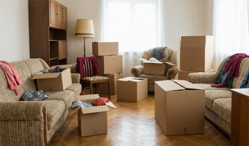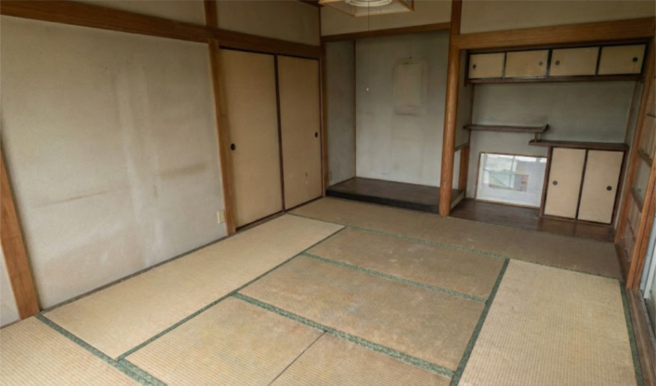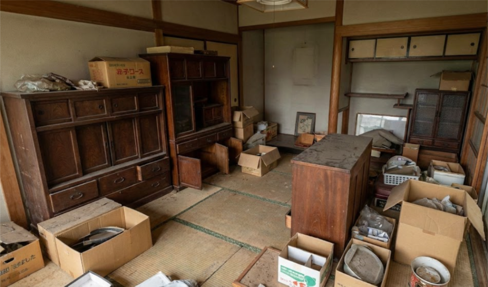 • <状況> 長年空き家だった実家の整理。大量の家財道具、古い贈答品などが山積み状態。